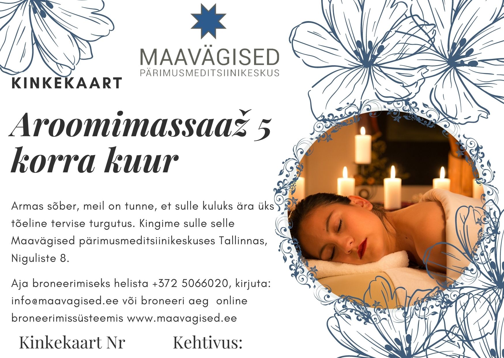 Kinkekaart aroomimassaaž 5 korra kuur