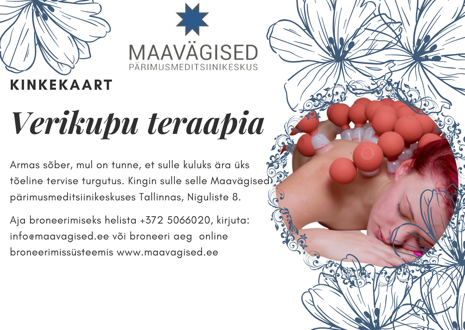 Kinkekaart verikuputeraapia annab sulle võimaluse saada osa iidsest terviseprotseduurist, mis on end läbi aastatuhandete ikka ja jälle tõestanud. See viib keha isetervenemisele ja annab võimaluse saavutada parim füüsiline vorm.